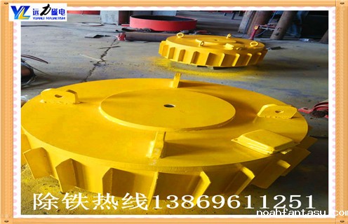 当除铁器连接到电源时,激励系统产生强磁场.当输送机械上的散装材料通过除铁器的下部时,混合在材料中的铁磁碎片被除铁器的磁场力吸上.铁渣重量为0.1-25kg),可以吸附在除铁器的下表面,当需要去除除铁器中铁吸附在铁磁性碎片上时,可以移动到铁盒上方的铁盒,切断现场电源除铁器磁场消失,这时铁磁碎片在重力下落入铁盒中.